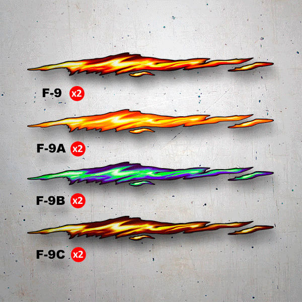 Vinyl car stickers side Fire flames narrow color. Spectacular design of the most striking, this is a scratch of fire located on both sides of your car. Choose one of the four designs, in shades of yellow, red, orange, green and violet. This product includes two stickers, one in normal position and one turned over, one for each side of the vehicle. In addition these vinyl have a layer of varnish to protect them from the sun and washing.