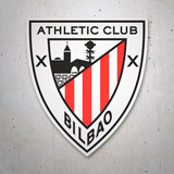 Sticker Shield Athletic Club Bilbao II. The coat of arms of Athlétic Club de Bilbao is one of the oldest in the Spanish league. It shows the Church of San Antón, the bridge and the oak tree, two wolves in sable, the red and white bars, as well as the "x" representing the cross of San Andrés.
