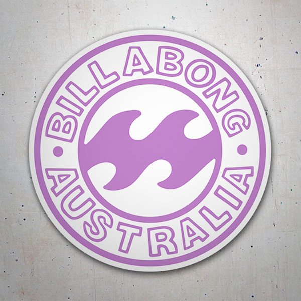 Sticker Billabong Australia. Stamp design of the famous surf brand Billabong in white and purple with their logo. The word Billabong comes from the Australian natives and means abandoned meander. Founded by Gordon Merchant in 1973 on the Gold Coast of Queensland, Australia.