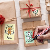Santa Claus Custom Label Kit. Design of 22 stickers for you to decorate the gifts you make at Christmas, this design has images of Santa Claus, a tree, a reindeer and a cookie. They have a blank space so that with a marker you can put for who is directed the gift.