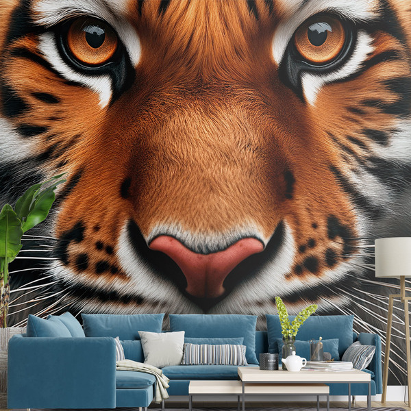 Wall mural Bengal tiger. Beautiful image of a close-up of the face of a beautiful tiger. They belong to the Pantera genre. They are solitary and very territorial animals. His strong and agile body can reach more than 3 meters and weigh up to 360 kg. It is the national animal of Bangladesh and India.