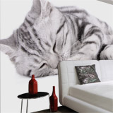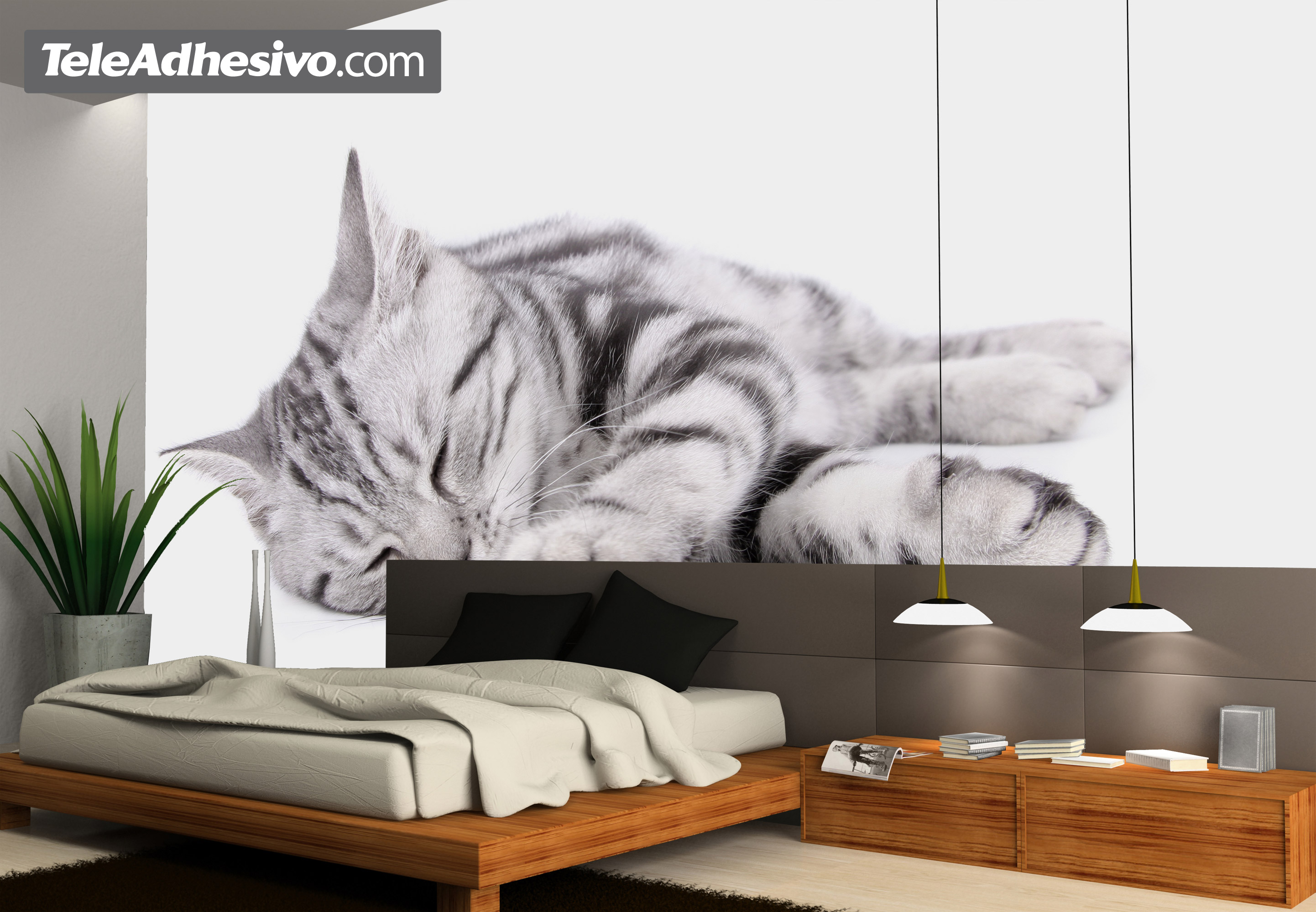 Wall mural Sleeping cat. We can see in the image a cute gray kitten sleeping, give a touch of tenderness to your room. Cats are, by nature, very sleepy. An adult cat sleeps 16 hours a day spread over a lot of naps, there are dozens of different breeds.
