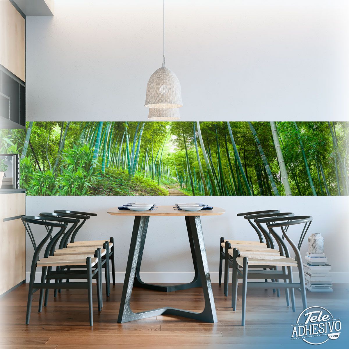 Self adhesive wallpaper border river among bamboo. Calm in the water of the river where some round stones float being reflected and in which some white flowers settle. This self adhesive border is composed of high resolution images, this makes it possible to produce them in large format without losing quality. It is an exclusive design to renew your walls and spaces. The design of the pattern allows to join units one after another without end. Its installation is easy and simple..