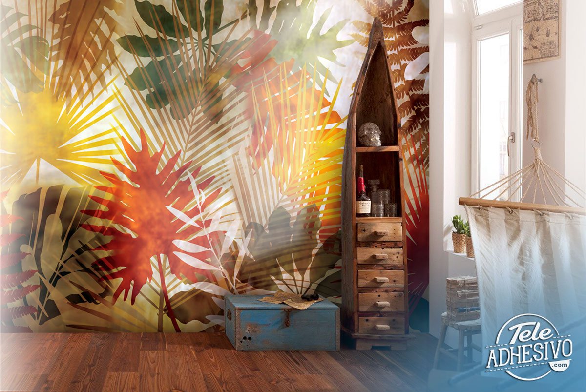 Wall mural hawaiian print. Beautiful and striking floral of the silhouettes of some flowers. Because of its shapes and colors it has a Hawaiian touch. It transmits joy and enthusiasm for both form and colour. It will liven up the room where you place it and will be very much appreciated.