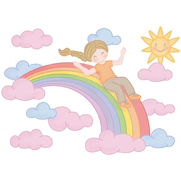 Nursery wall stickers rainbows and stars. A design with a rainbow, stars and clouds in bright, eye-catching colours. This design is perfect for any child's room and is sure to make your little one feel happy and comfortable. Available in different sizes.