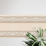 Self adhesive wallpaper border curve delle dune fiorite. Series of waves forming curves similar to waves or desert dunes composed of different browns in which there are small flowers inside. This self adhesive border is composed of high resolution images, this makes it possible to produce them in large format without losing quality. It is an exclusive design to renew your walls and spaces. The design of the pattern allows to join units one after another without end. Its installation is easy and simple..