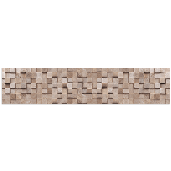 Self adhesive wallpaper border wooden squares. Composition of wooden squares in light brown tones placed in such a way as to give the sensation of relief on them. This self adhesive border is composed of high resolution images, this makes it possible to produce them in large format without losing quality. It is an exclusive design to renew your walls and spaces. The design of the pattern allows to join units one after another without end. Its installation is easy and simple..