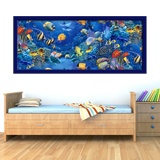 Adhesive vinyl poster Picture Seabed. Trampantojo of a picture with an image of the bottom of the sea where they appear multitude of different species of fish. Beautiful design as the colors of the fish make them stand out against the sea bed in blue tones. Ideal to decorate any room.