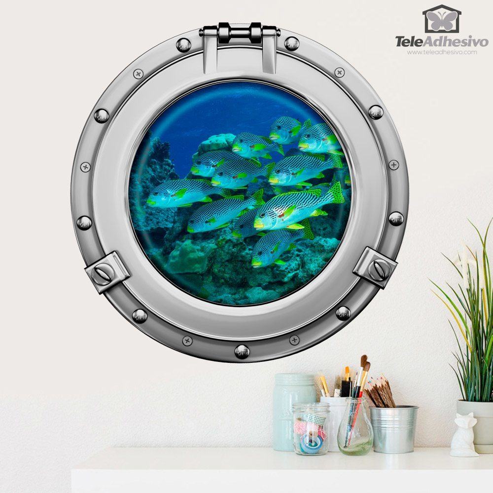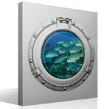 Wall sticker porthole or circular window which you can see a beautiful fish bank
