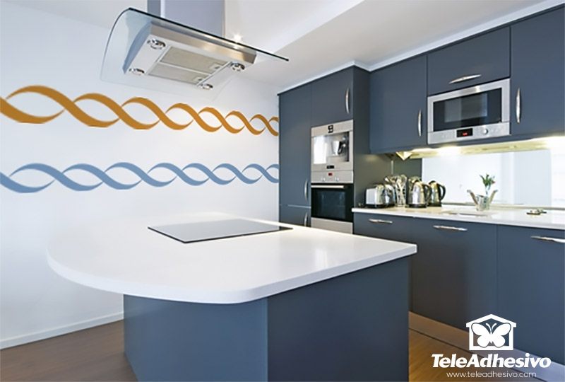 Wall border Stickers Alhua. The design imitates sea waves, some intertwining with others. A very useful element to combine with a vinyl, a photomural or simply to divide a wall. Designed to be placed one after another. The wider the border the less often the motif is repeated.