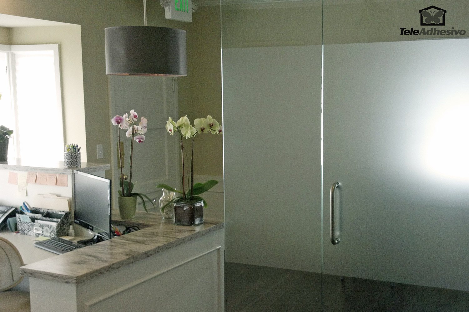 - Sheet 120cm translucent vinyl. Finish Over-etched glass. - To preserve privacy with style. Allows light to pass through but not the image. - Applications: Commercial, office, windows, shower screens, windows, glass doors, etc.. - Easily Cut with scissors or cutter. - For customized and embossed with designs or logos measures, Email us at info@muraldecal.com. - Easy installation to the water, watch the video: