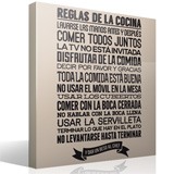 Wall Sticker kitchen rules - Spanish. Typesetting in Spanish featuring a series of good manners for cooking as for example: wash your hands before and after eating all together, tv is not invited, say please and thank you, do not use the phone at the table, eating with your mouth shut , etc